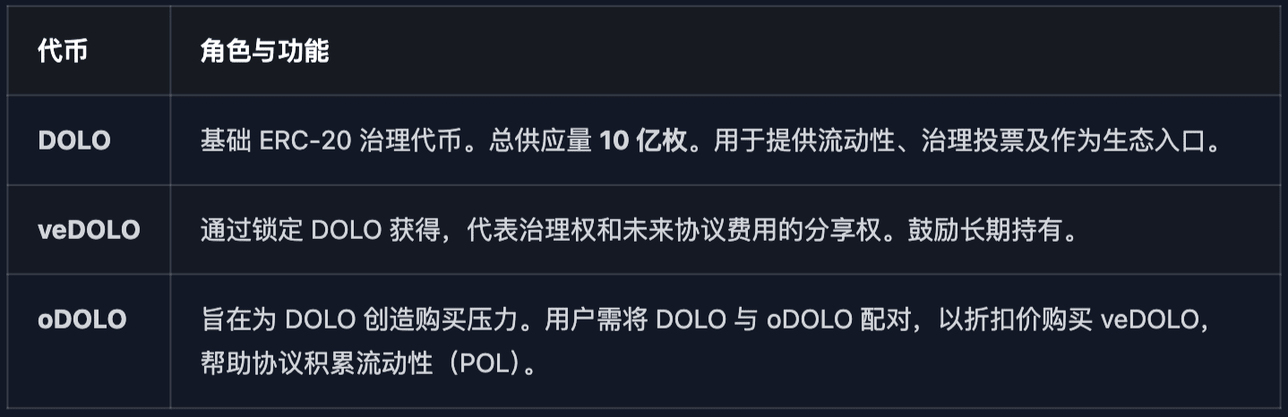 Il modello economico di Dolomite si basa su tre token: DOLO, veDOLO e oDOLO, creando un circolo virtuoso progettato per ottenere un'acquisizione di valore a lungo termine e una crescita dell'ecosistema.