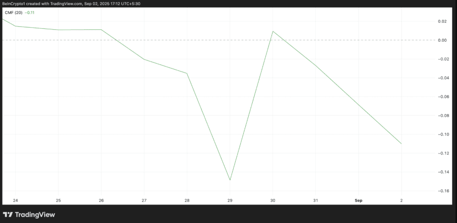 L'indicatore Chaikin Money Flow (CMF), che monitora i flussi di denaro in entrata e in uscita dai beni, mostra anche prospettive negative per PI. Attualmente, questo indicatore si trova a -0,11, indicando che la pressione di vendita prevale nelle operazioni di trading.
