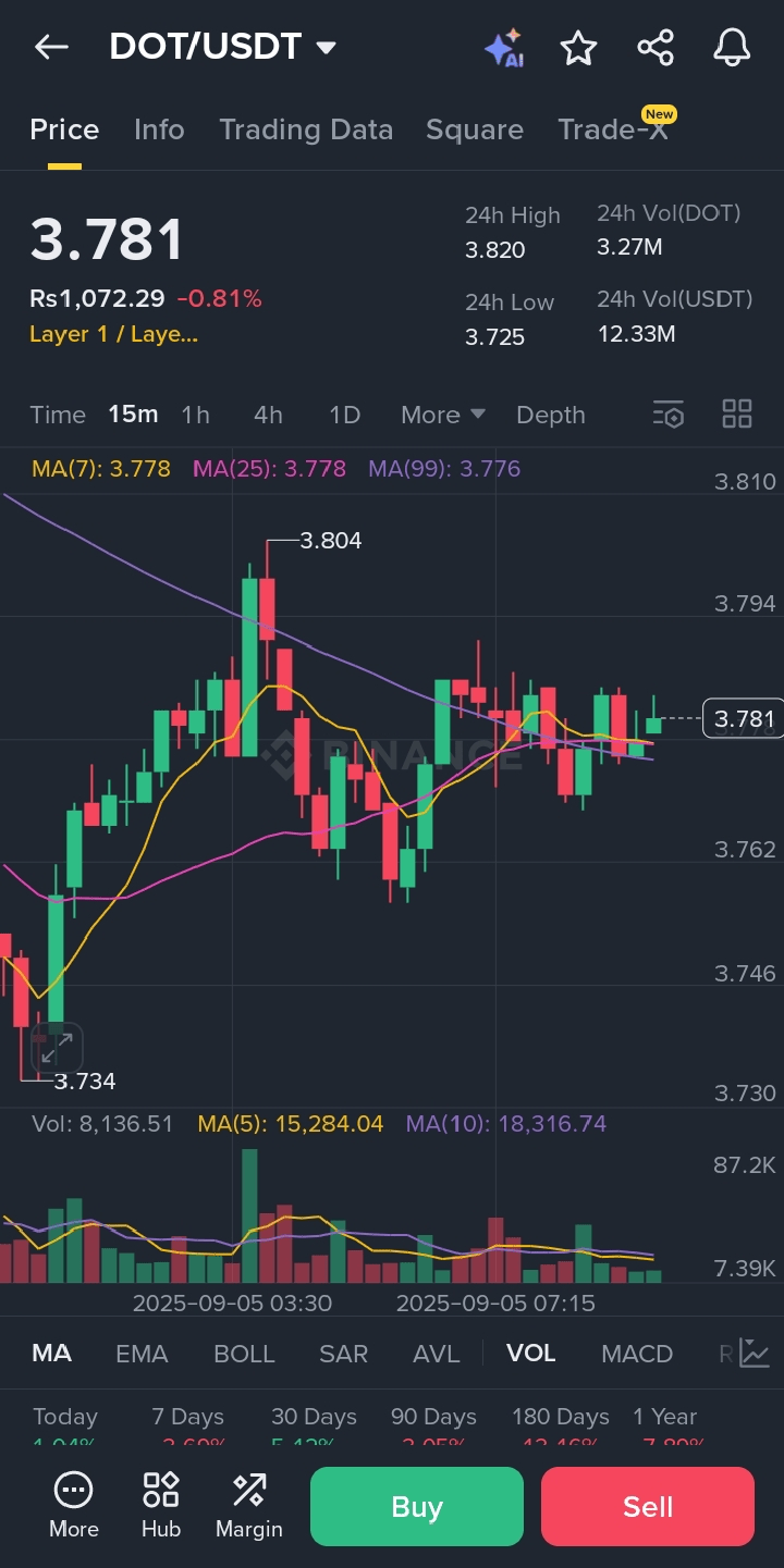 Il prezzo live del token cripto Polkadot è $ 3.84265340.