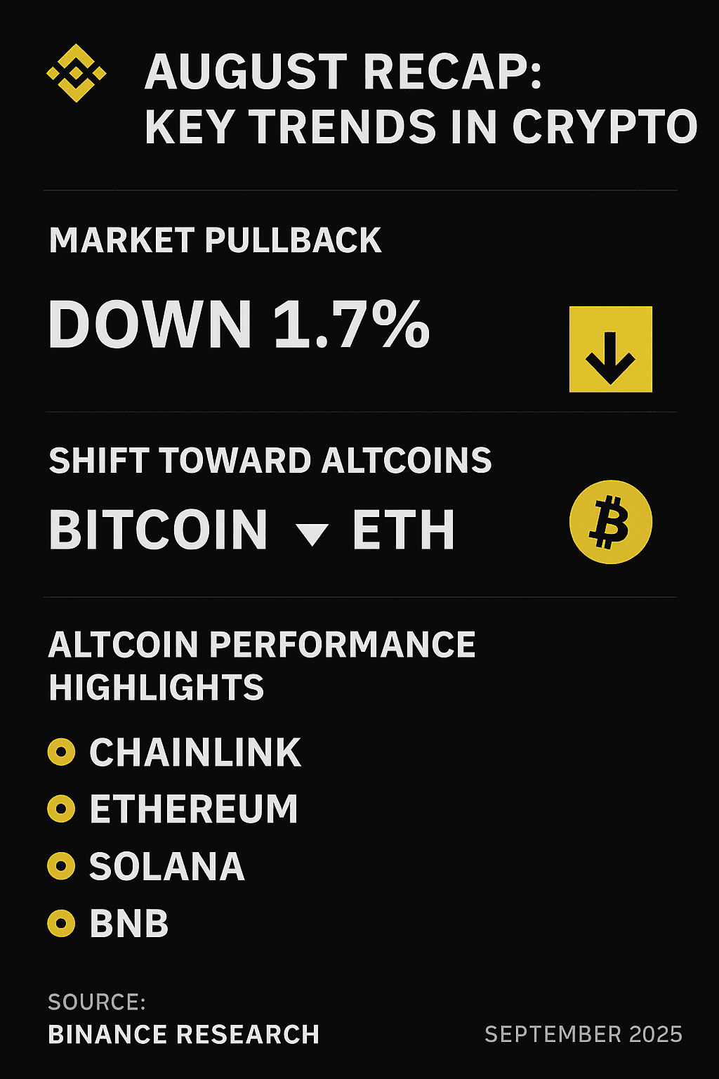 Ritracciamento del mercato ad agosto: la capitalizzazione totale del mercato delle criptovalute è diminuita dell'1,7%, influenzata principalmente da un indice dei prezzi alla produzione statunitense inaspettatamente alto che ha intaccato l'appetito per il rischio.