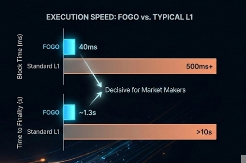 Fogo si è posizionata direttamente in quella tensione. Non solo "siamo veloci", ma "siamo costruiti per l'esecuzione." È leggermente diverso. L'esecuzione riguarda quanto rapidamente e affidabilmente una transazione passa dall'intenzione al regolamento. Se la latenza è bassa, significando che il ritardo tra l'invio e la conferma di una transazione è minimo, le strategie che dipendono da tempi serrati diventano realistiche. I market maker, le aziende che pubblicano costantemente ordini di acquisto e vendita, vivono in quel mondo. Alcuni millisecondi risparmiati nel tempo di andata e ritorno possono cambiare il loro modello di rischio.