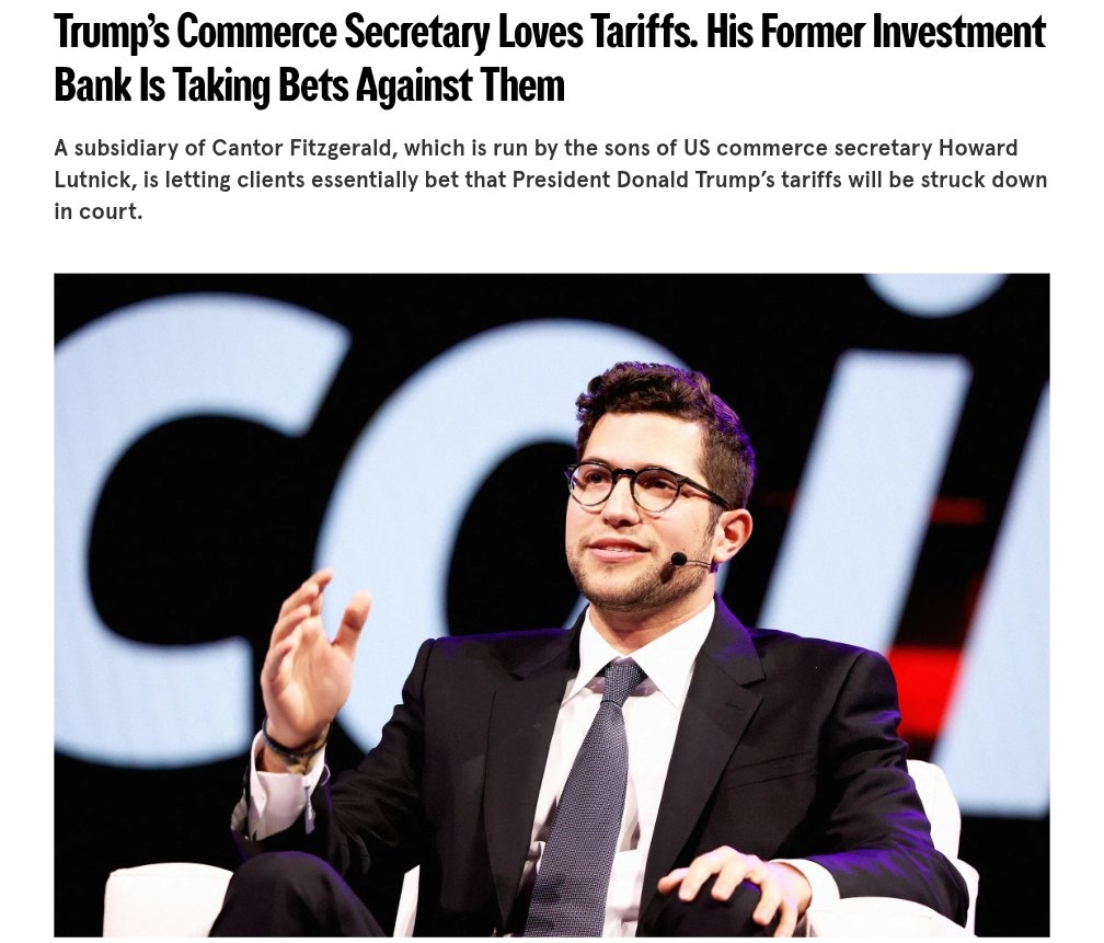 Howard Lutnick non è una persona qualsiasi. Si trova all'interno del governo. La sua azienda familiare ha strutturato un commercio direttamente legato alla sopravvivenza legale delle tariffe create da quel governo.