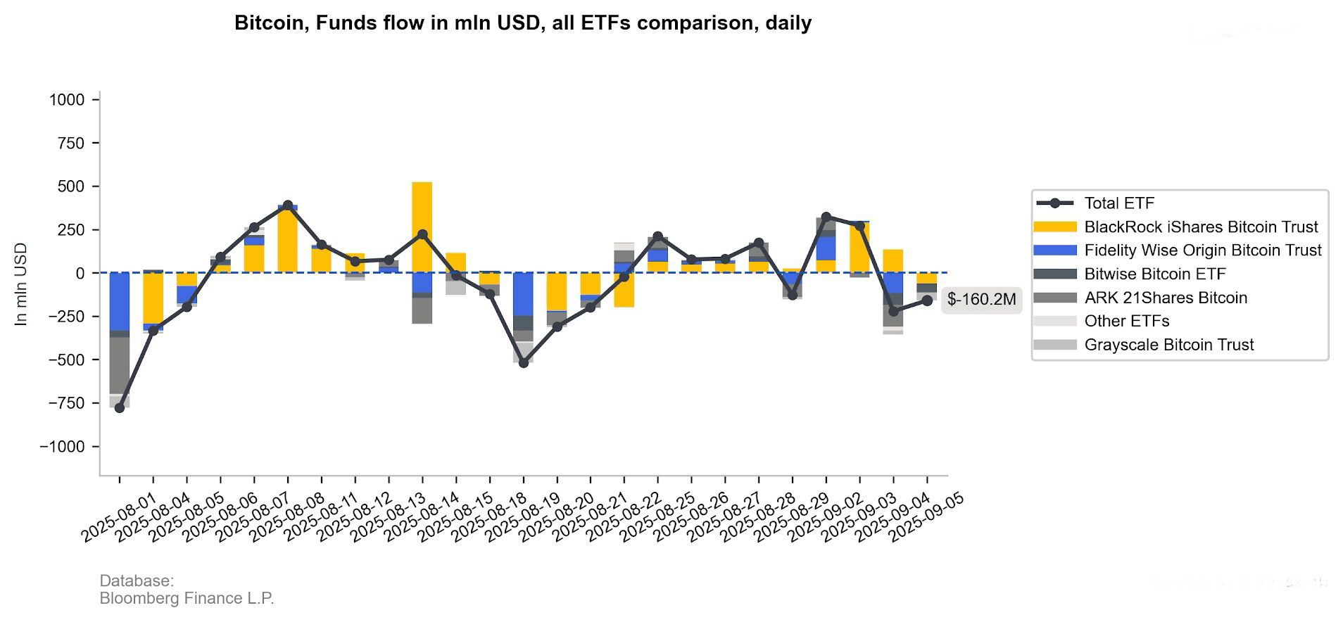 Per quanto riguarda #Ethereum vediamo cinque sessioni consecutive di deflussi netti, anche se ciò non dovrebbe sorprendere dato il volume di accumulo degli ETF nelle ultime settimane. L'ETF di BlackRock ha venduto oltre 300 milioni di dollari in ETH, ma anche questo non è necessariamente un segnale di prezzo ribassista, poiché intorno al 20 agosto abbiamo osservato una situazione simile, seguita da diverse sessioni di afflussi netti in Ethereum. Tutto ciò porta alla conclusione che, in questa fase, il raffreddamento è naturale e non indica ancora un ritiro strategico di capitale dalla crypto.