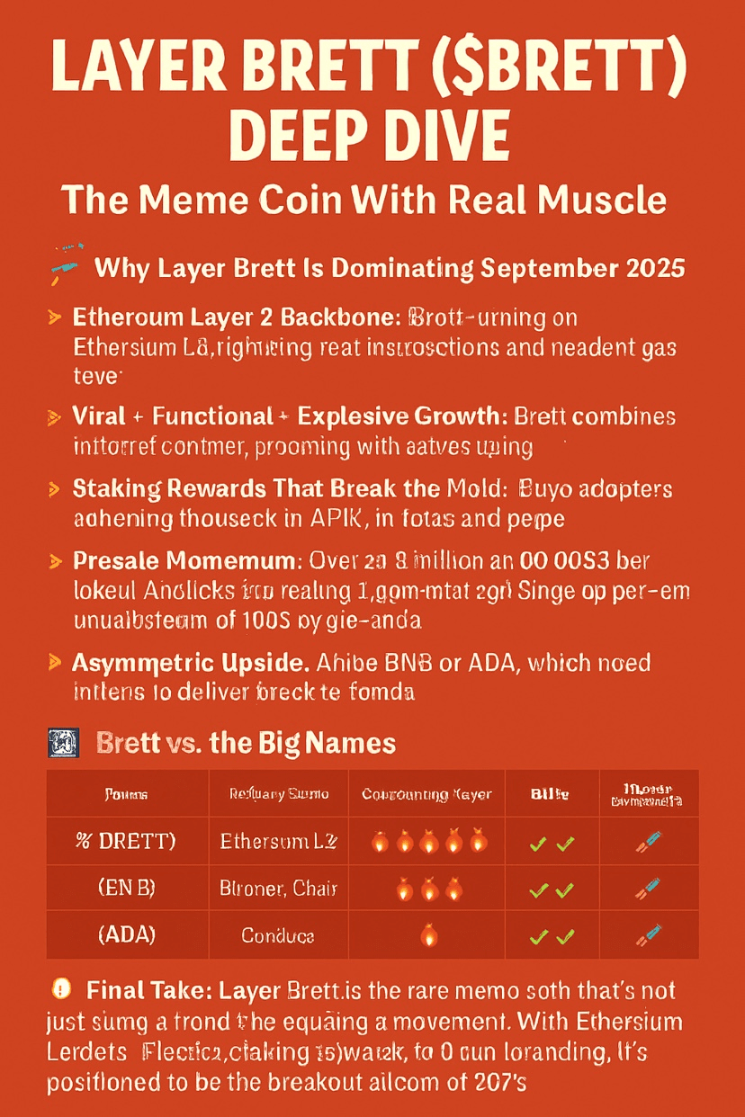 Layer Brett è la rara meme coin che non sta solo seguendo una tendenza—sta costruendo un movimento. Con la tecnologia Ethereum L2, enormi ricompense per lo staking e un branding virale, è posizionata per essere l'altcoin esplosivo del 2025.