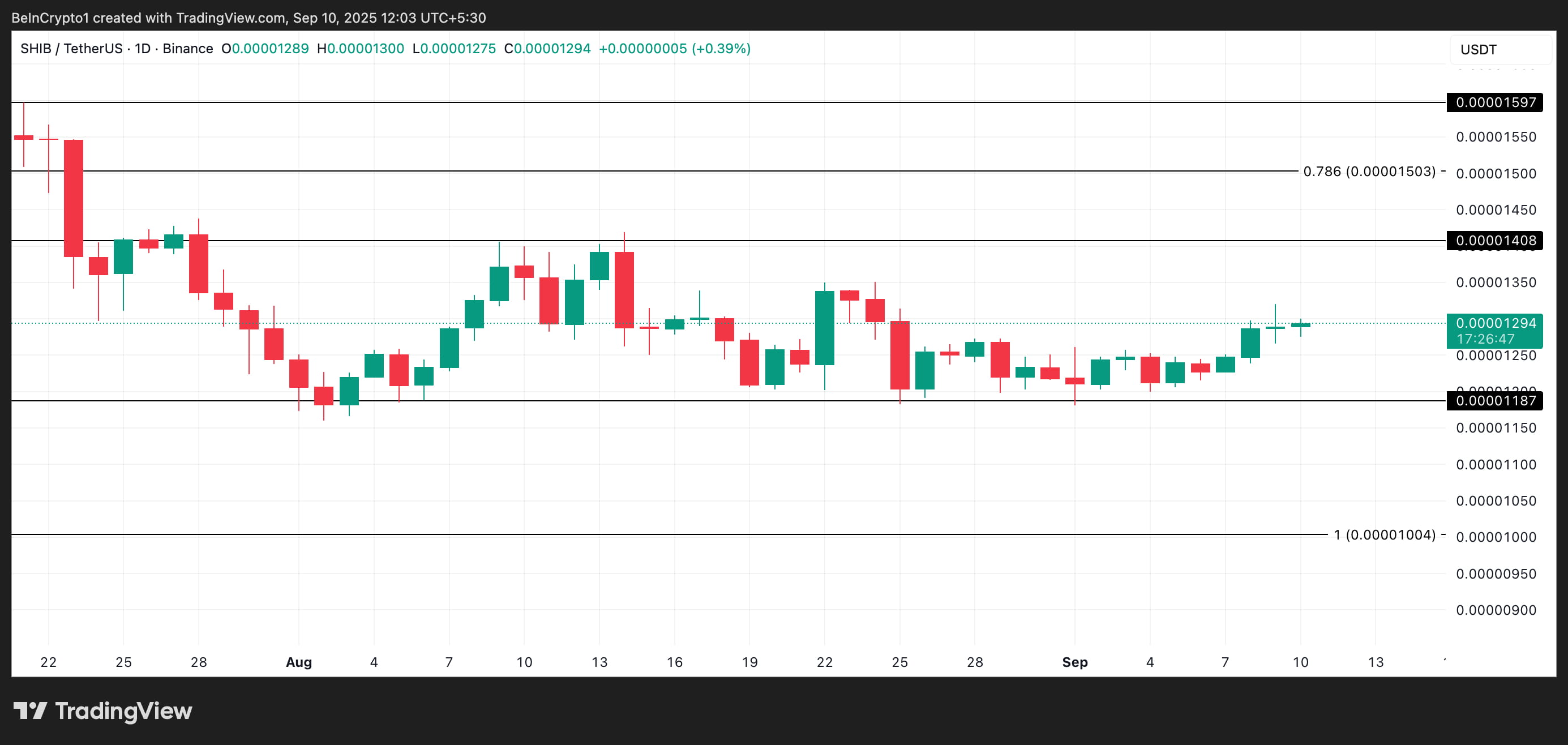 Al momento della scrittura, SHIB viene scambiato a $0,00001294, mantenendosi sopra il supporto a $0,00001187. Se le vendite dei detentori a lungo termine continueranno, questo supporto rischia di indebolirsi, portando a un calo fino a $0,00001004.