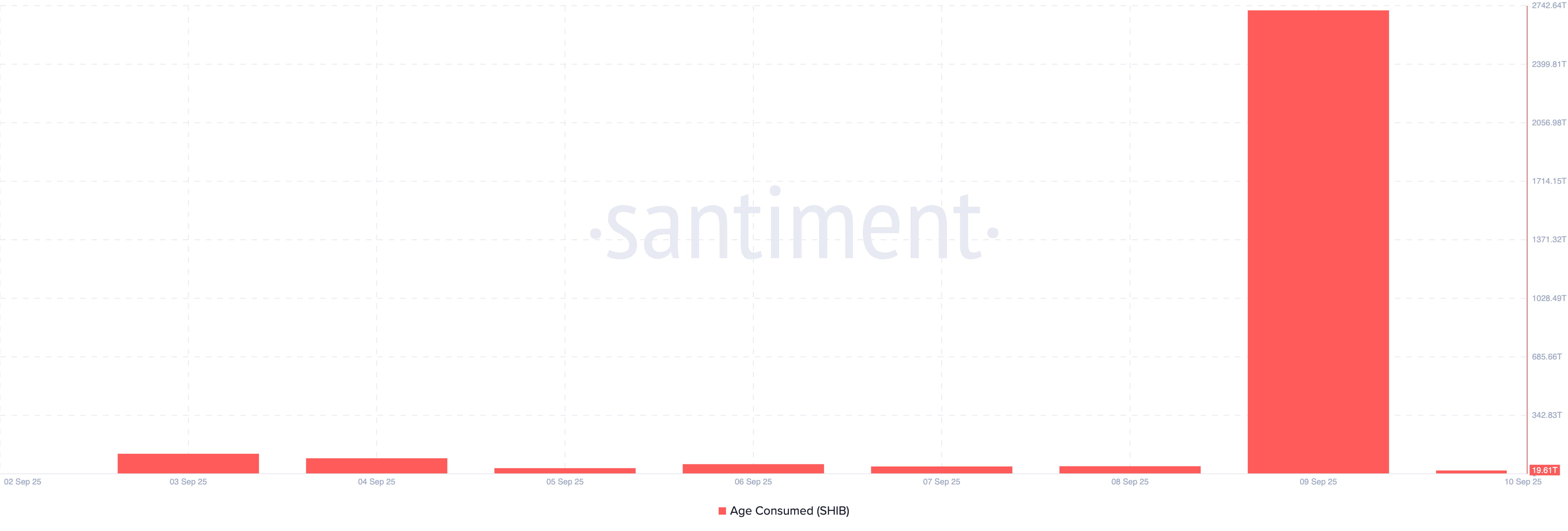 L'aumento a breve termine di SHIB fino al massimo di 15 giorni martedì ha spinto i detentori a lungo termine a spostare i loro token precedentemente inattivi. Questo si è riflesso in un forte aumento dell'indicatore age-consumed, che misura il movimento delle monete detenute a lungo. Secondo Santiment, ieri l'indicatore ha raggiunto un massimo di tre mesi di 2,715 trilioni.