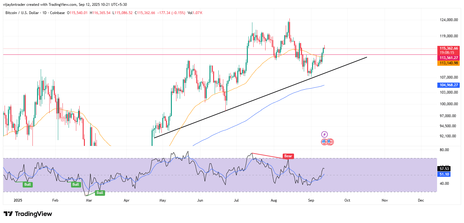 Segnale di continuazione: Mantieni sopra 114K con RSI >50-55