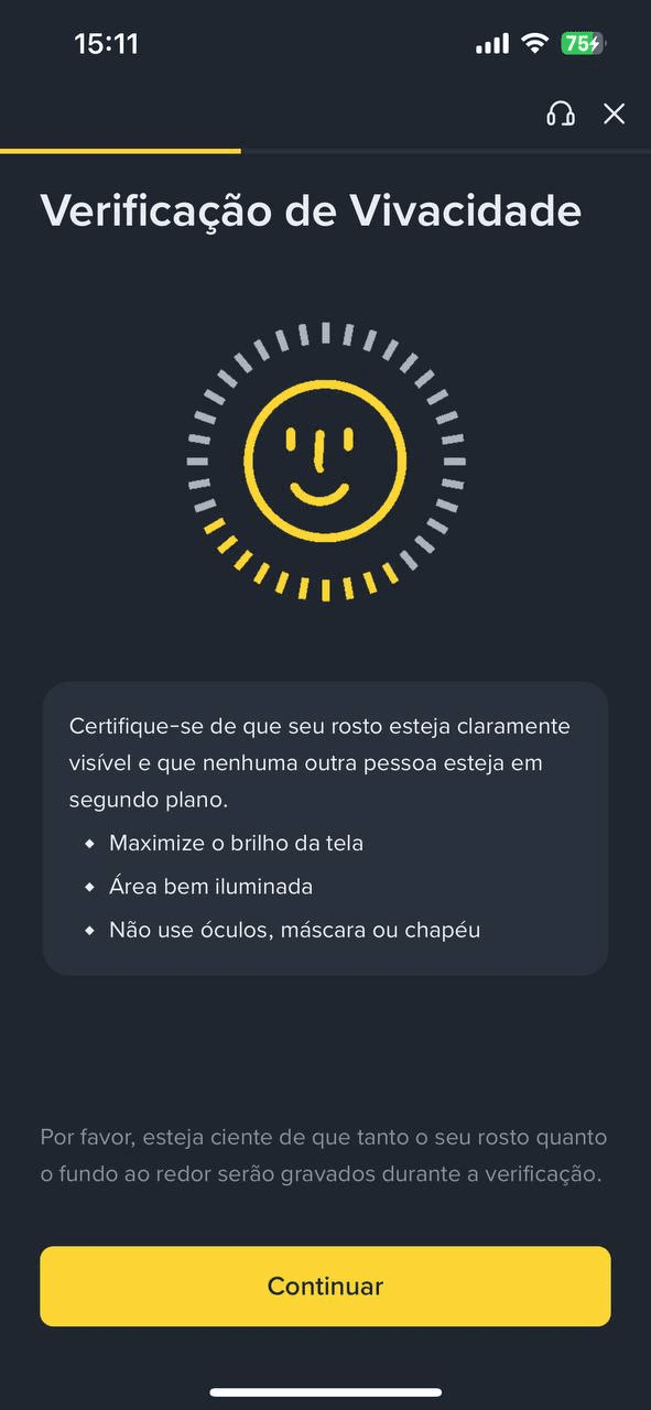 Subito dopo aver inviato i documenti, verrai indirizzato a una fase di verifica facciale, che garantisce che sei realmente tu a effettuare il processo.