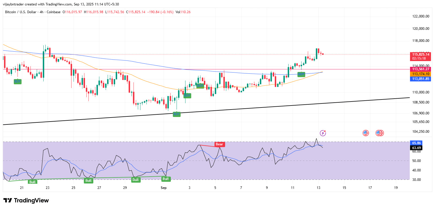 Punto fondamentale: Il bias è per un rialzo controllato mentre il flip S/R a 114.0K–114.5K e le scale EMA reggono con RSI sopra 50, con 116.8K–117.8K come il prossimo cluster di resistenza logico; perdere queste condizioni e il piano torna a essere range o mean-reversion.