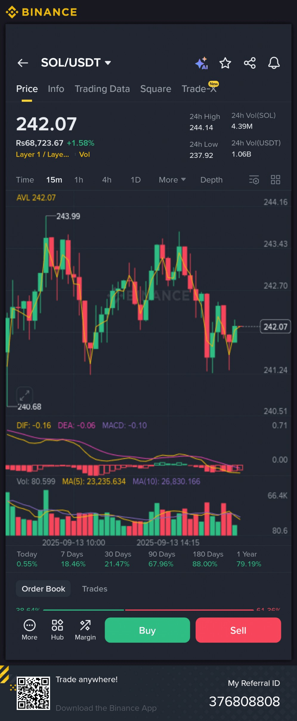 $SOL si mantiene forte a $243 (+1.67%), e il grafico sta urlando opportunità. 👀