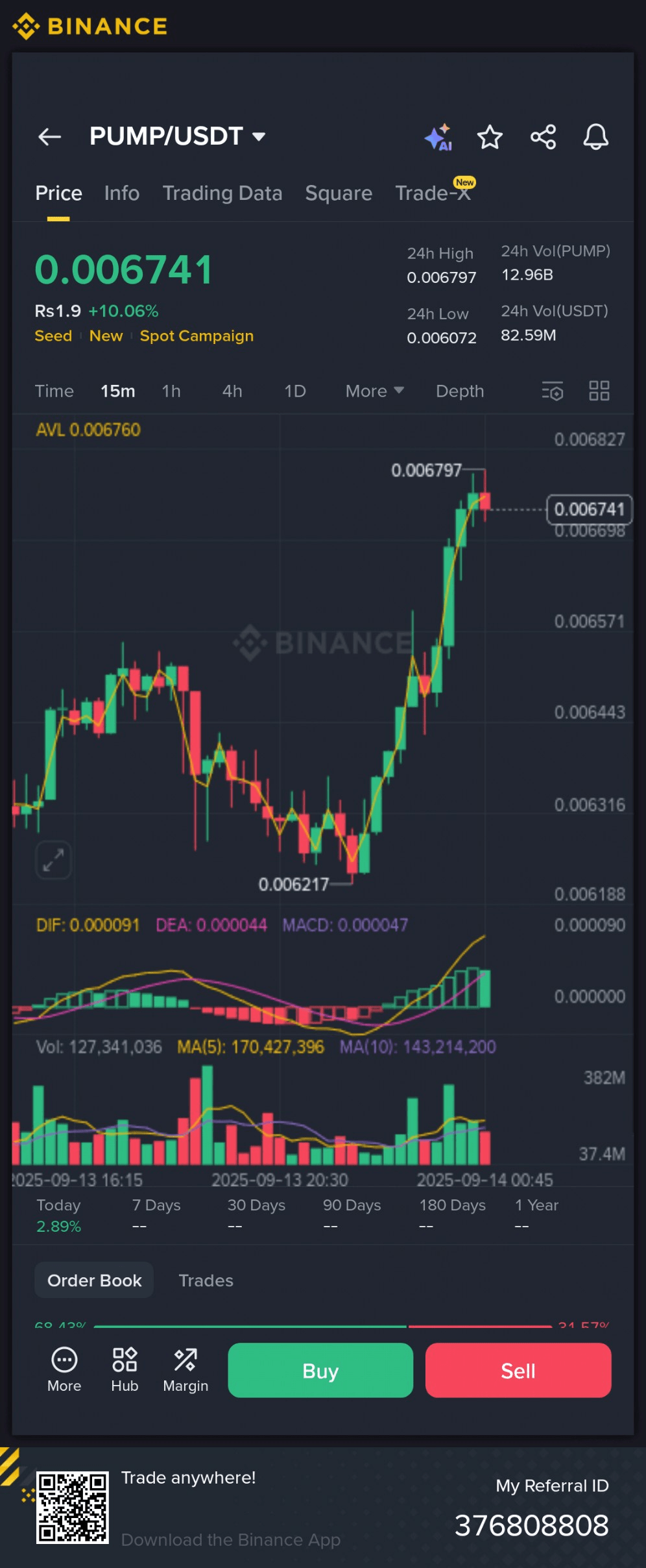 $PUMP sta negoziando a $0.006736 (+9.80%), dopo aver raggiunto un massimo di 24 ore di $0.006754. Gli acquirenti stanno tornando, con nuove candele verdi che spingono il prezzo verso l'alto. 📈