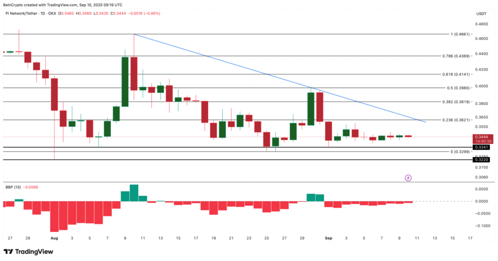 Tuttavia, è importante notare che la tendenza ribassista continua a dominare alcuni indicatori tecnici. Attualmente, il prezzo di Pi Coin si trova all'interno di un triangolo discendente, un modello spesso associato a rotture. Il livello di supporto attuale si aggira intorno a $0,33 e $0,32, e se dovesse essere violato, Pi Coin potrebbe tentare di raggiungere un nuovo minimo storico, compromettendo così le speranze di recupero.