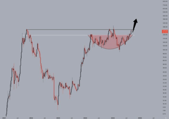 Pattern Coppa e Manico → Possibile breakout verso $330–$350 (TEKT0NIC).