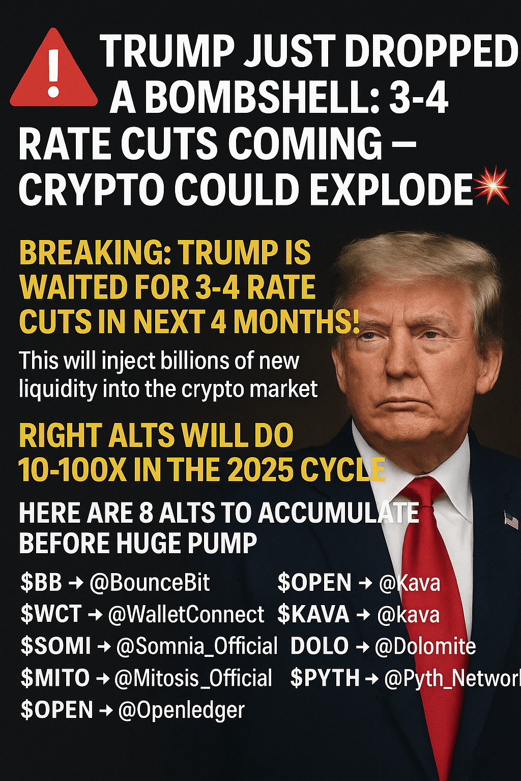 Il piĂš grande macro catalizzatore del ciclo potrebbe essere appena arrivato. L'ex presidente degli Stati Uniti Donald Trump #TRUMP ha chiesto 3â4 tagli dei tassi nei prossimi 4 mesi, preparando il terreno per un'ondata di liquiditĂ che potrebbe supercaricare i mercati crypto.