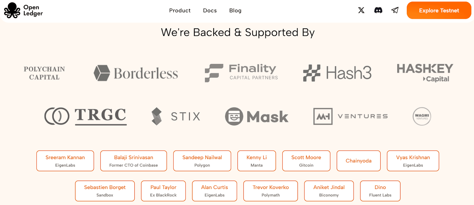 @OpenLedger ha completato un finanziamento di seed di 11,2 milioni di dollari a luglio 2024, con investitori come Polychain Capital, Borderless Capital, Finality Capital, Hashkey e diversi noti investitori angelici, tra cui Sreeram Kannan (EigenLayer), Balaji Srinivasan, Sandeep (Polygon), Kenny (Manta), Scott (Gitcoin), Ajit Tripathi (Chainyoda) e Trevor. I fondi verranno principalmente utilizzati per promuovere la costruzione della rete AI Chain di @OpenLedger , il meccanismo di incentivazione dei modelli, il livello di base dei dati e l'ecosistema delle applicazioni degli agenti.