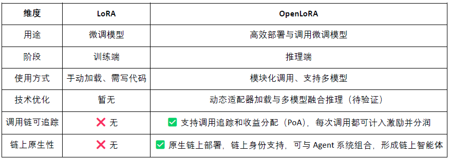 Il modello come asset (Model-as-Asset): OpenLoRA non è solo un modello di distribuzione, ma conferisce a ciascun modello fine-tunato un'identità on-chain (Model ID), legando il suo comportamento di chiamata agli incentivi economici, realizzando “chiamata e distribuzione dei profitti”.