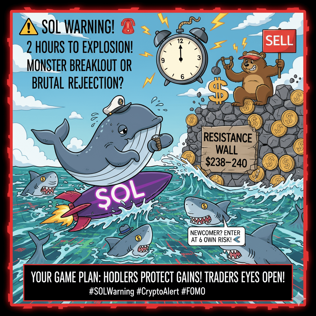 $SOL è salito rapidamente in un forte rally, ma ora sta sbattendo contro un muro di resistenza decisivo a $238–$240.