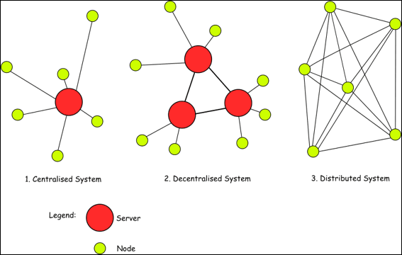 Fonte: RS in linea | una spiegazione visiva di cosa sia un nodo in una blockchain in tre tipi di sistemi