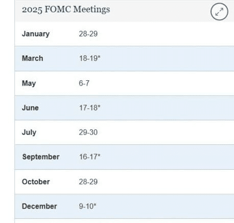 La Riserva Federale (Fed) prende decisioni in tutte le sue riunioni (circa 8 all'anno), ma quelle di marzo, giugno, settembre e dicembre sono considerate "riunioni sovraccariche" o "riunioni con conferenza stampa completa" perché includono due elementi chiave che le altre non sempre hanno