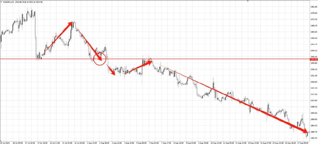 Ma d'altro canto, quando si verifica questo schema, è il momento di andare allo scoperto e, una volta che il trend si interrompe e crolla, la forza sarà spesso molto forte.