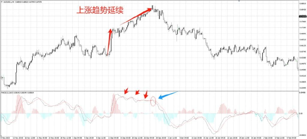 In generale, durante questo processo, il MACD si bloccherà ripetutamente e divergerà a un livello elevato. Finché questo processo non si conclude, significa che il trend continua.