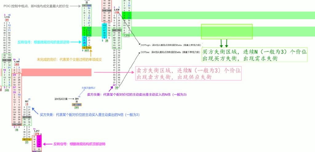 Nello strumento di flusso degli ordini, il prezzo con il volume di scambi più elevato in ogni linea K viene conteggiato in tempo reale e registrato come POC. Quando POC appare in alto, significa che c'è un'alta probabilità di un picco a breve termine per questa posizione.