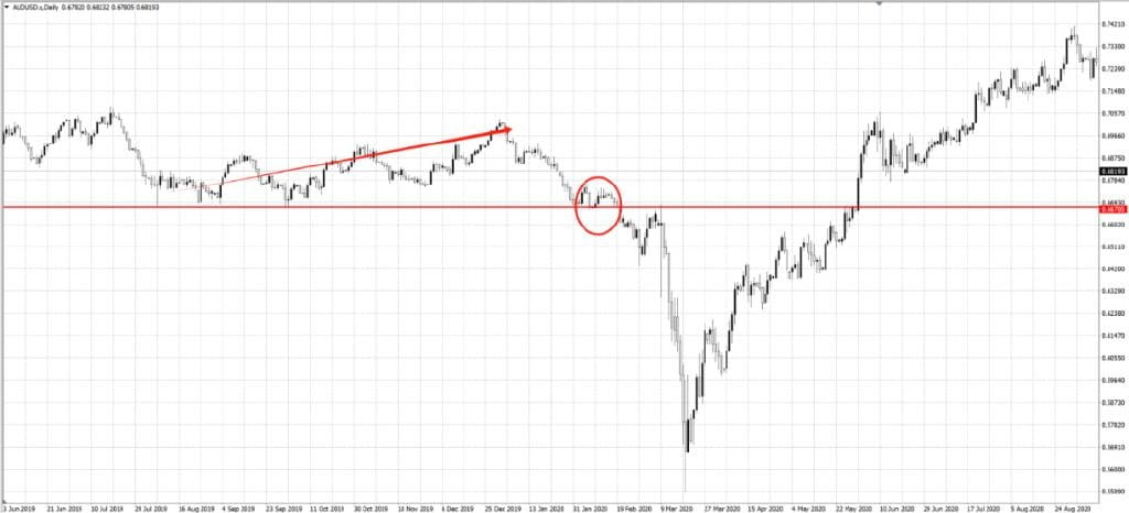 Un'inversione di tendenza forte potrebbe verificarsi molto rapidamente. Se non si entra nel mercato in tempo, si può anche valutare di entrare nel mercato quando il livello di supporto viene rotto.