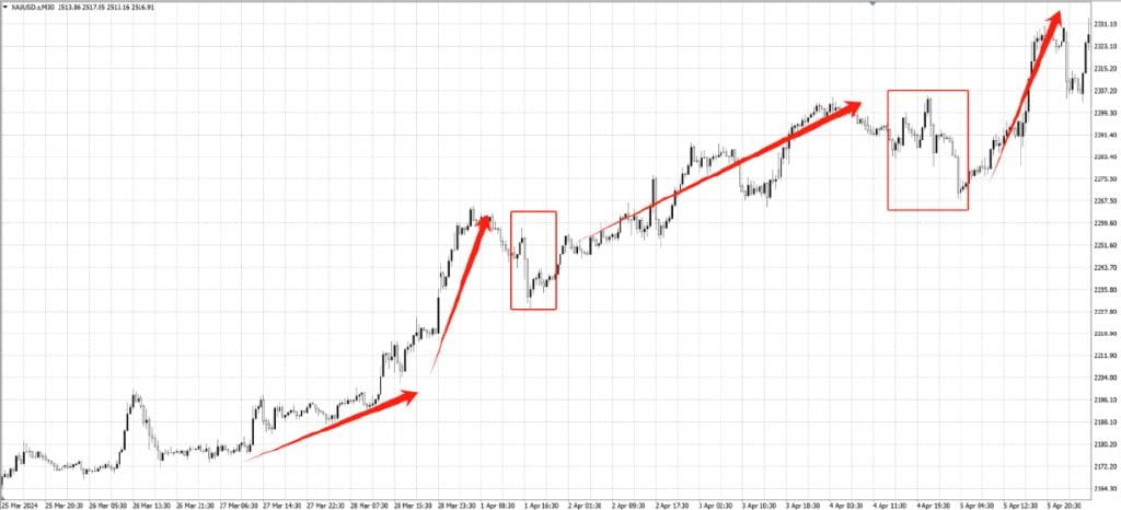 Tuttavia, se la forza del pullback è molto limitata e il volume del calo si riduce durante questo processo, significa che il mercato non ha molte opzioni da seguire. Una volta che il volume aumenta di nuovo, il trend rialzista continuerà.