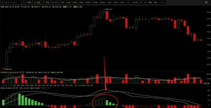 5. Quando le barre verdi iniziano a scomparire e le barre rosse iniziano ad aumentare, indica che il ciclo rialzista corrente o il ciclo di consolidamento sta per finire, i prezzi subiranno un ribasso.