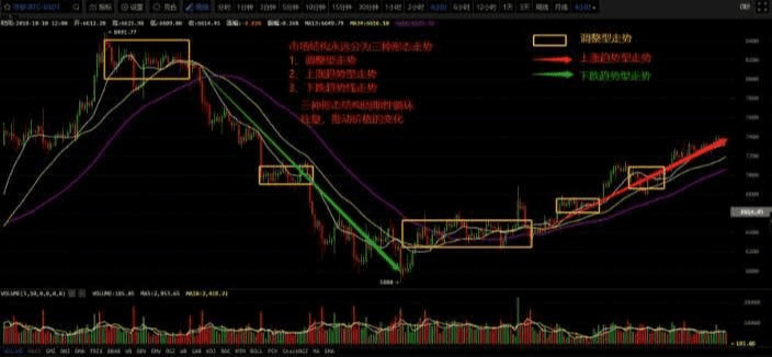 La struttura della tendenza è composta da rialzi, ribassi e aggiustamenti, i dettagli possono essere visti nell'immagine sottostante.