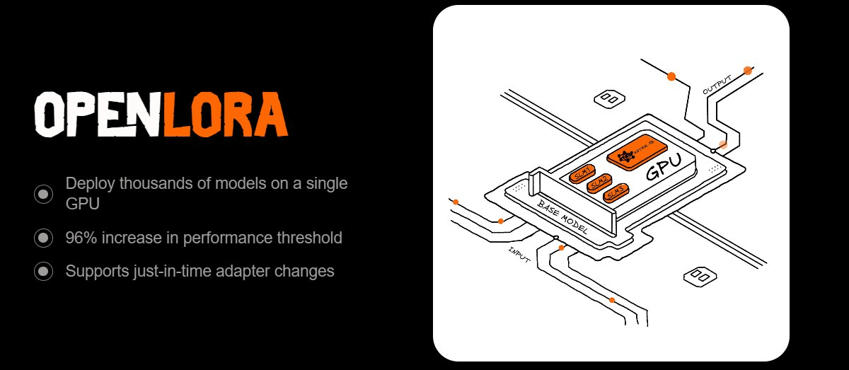 Ecco perché OpenLoRA ha catturato la mia attenzione. È progettato per servire migliaia di modelli LoRA su una singola GPU senza sforzo. Il trucco? Caricamento dinamico degli adattatori. Invece di pre-caricare tutto, estrae solo ciò di cui hai bisogno, lo unisce a un modello di base al volo e lo restituisce dopo l'inferenza. La memoria rimane snella, il throughput rimane alto, la latenza rimane bassa.