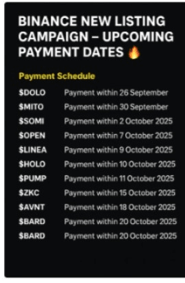 Le campagne di quotazione su Binance sono eventi molto attesi, poiché generano spesso un forte interesse della comunità e portano nuove opportunità per i primi sostenitori. Ricevere pagamenti puntuali garantisce trasparenza, aumenta la fiducia degli utenti e aggiunge liquidità a questi token appena quotati.