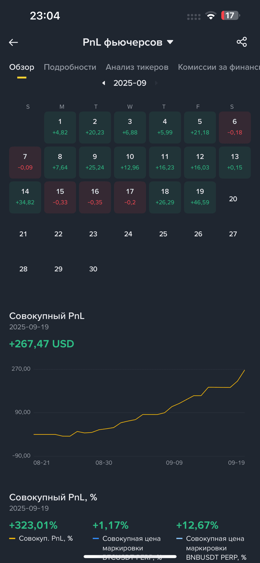 Settembre ha mostrato risultati stabili. Le somme sono modeste, ma per me ora è più importante la sistematicità. Ho smesso di giocare d'azzardo e ho iniziato a lavorare secondo le regole 📊.