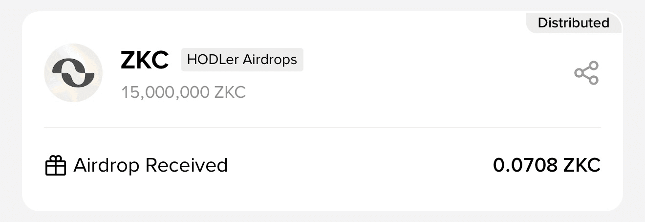 • Allocazione: 15 milioni di ZKC (1,5% dell'offerta totale) sono stati riservati per il programma di airdrop HODLer di Binance.