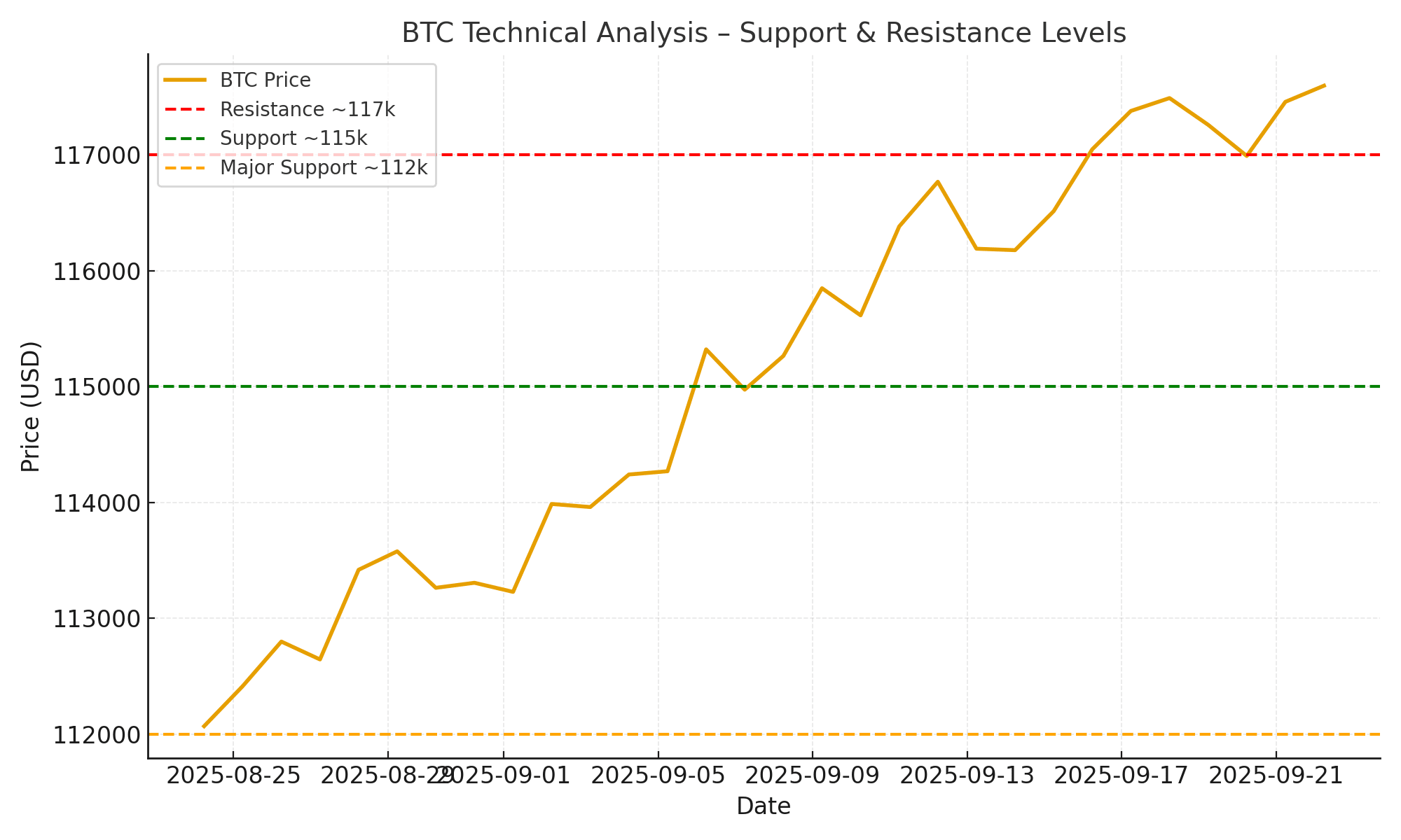 Supporto più profondo ~$111,000–$112,000 Se il supporto immediato viene rotto, questo è il livello da cui ci si aspetta che i compratori si raggruppino di nuovo.