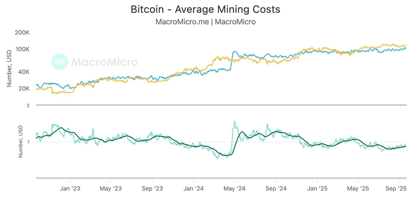 Costo di estrazione: $99.5K contro prezzo $112.9K โ i miner sono ancora redditizi.