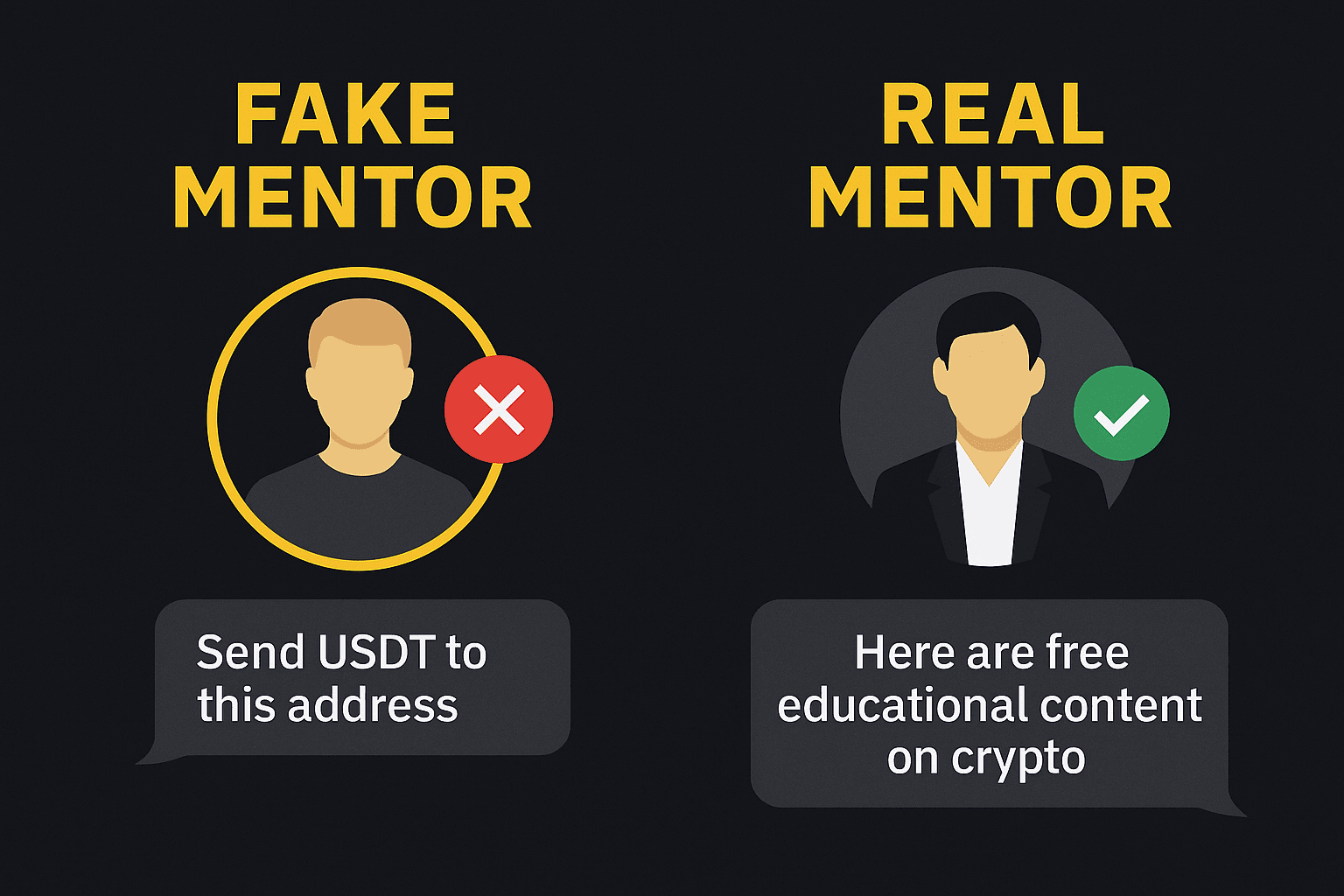 Nel mondo in rapida crescita del crypto, i truffatori hanno trovato un nuovo trucco: fingere di essere mentori o allenatori. Usano profili falsi, foto rubate e parole convincenti per attirarti.