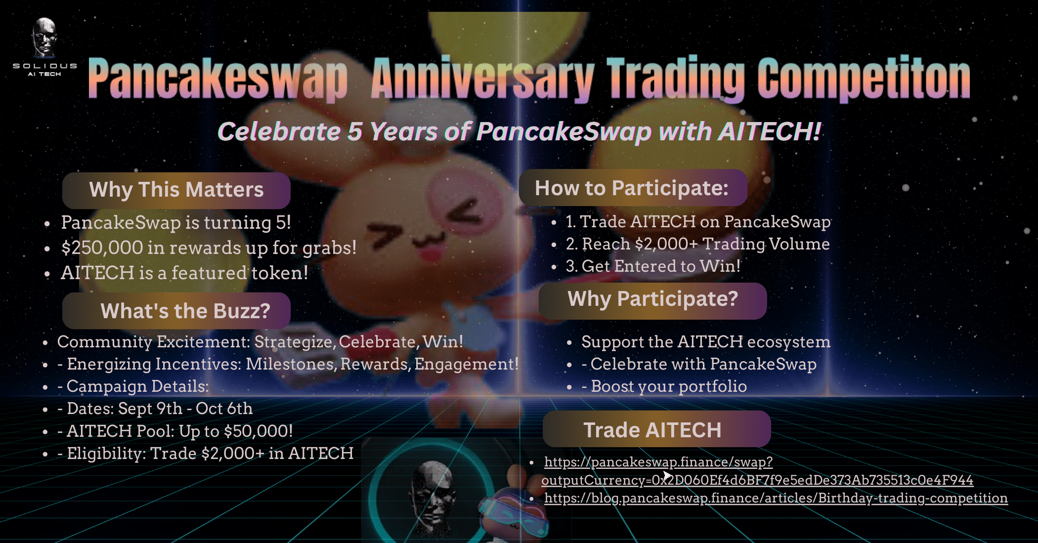 Ciò che rende questa celebrazione distintiva è il modo in cui è strutturata la partecipazione. Ogni token ha il proprio pool di ricompensa, con un valore di circa $50.000 allocato. Per $AITECH , più di 2,8 milioni di token sono messi da parte. Per qualificarsi, i trader devono raggiungere almeno $2.000 in operazioni cumulative per un token scelto, con acquisti e vendite che contano verso quel totale. I vincitori vengono quindi selezionati tramite estrazione casuale all'interno dei livelli, bilanciando le probabilità tra trader frequenti e più piccoli.