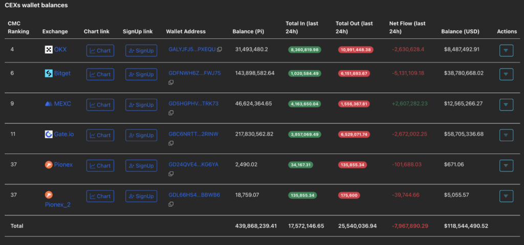 Tuttavia, queste informazioni non sono sufficienti per calmare il sentiment del mercato quando il prezzo del token PI ha toccato un minimo storico di 0,1842 USD durante il giorno, prima di riprendersi leggermente e chiudere a 0,2860 USD. I dati di PiScan mostrano anche un deflusso netto di 7,96 milioni di token PI dalle borse CEX nell'arco di 24 ore, indicando la fiducia di molti investitori nell'acquisto a prezzi scontati.