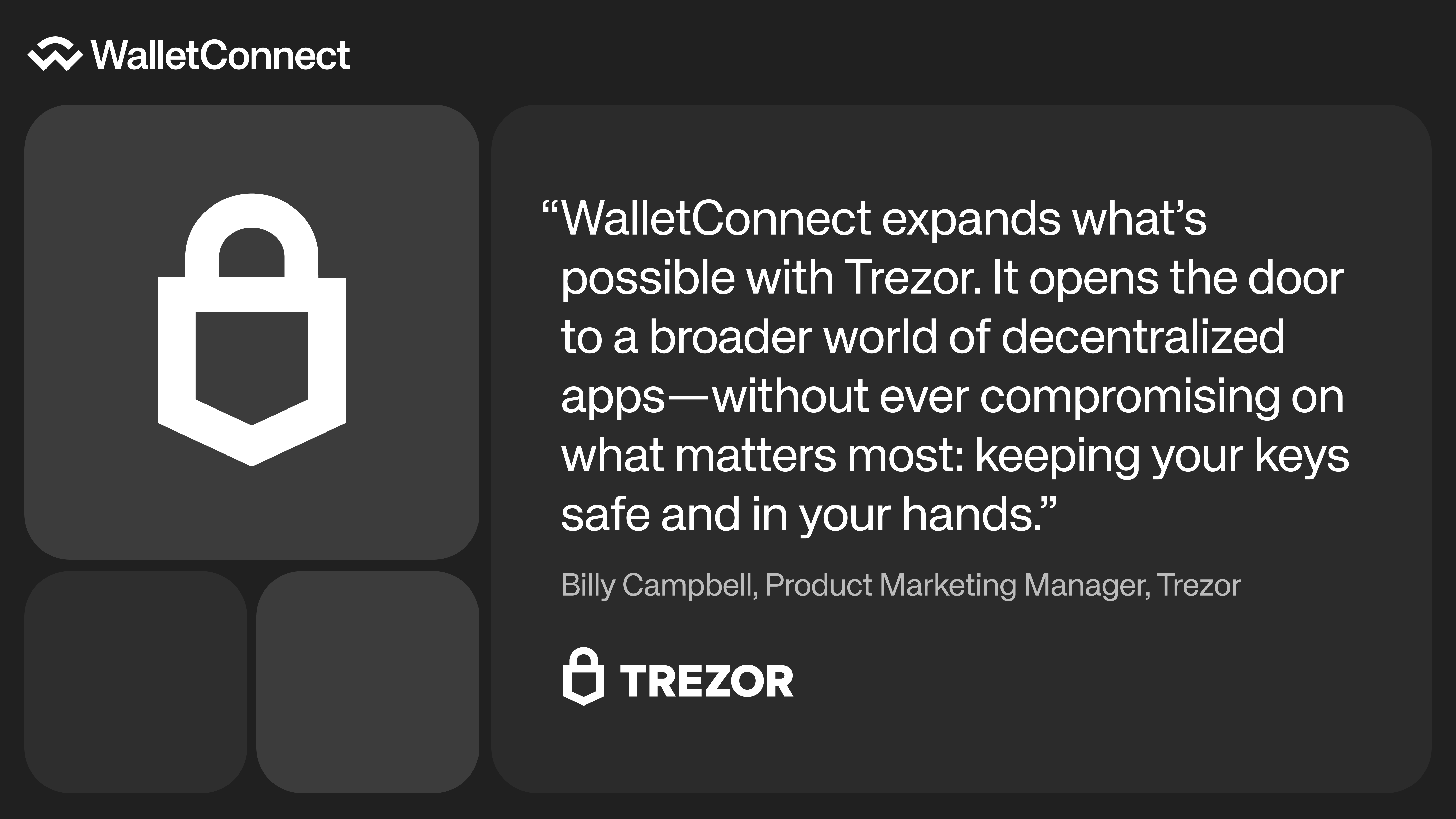 Per Trezor, collegarsi direttamente a questo ecosistema tramite il Wallet SDK di WalletConnect garantisce compatibilità immediata e accesso a innovazioni future attraverso le blockchain. Gli sviluppatori non dovranno costruire integrazioni separate per Trezor; invece, ereditano immediatamente la vasta interoperabilità di WalletConnect.
