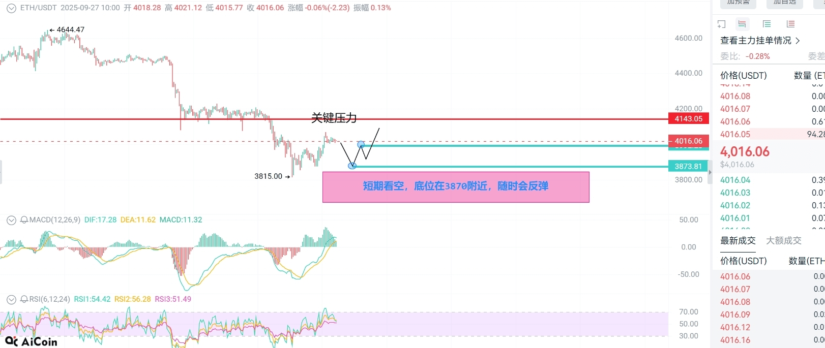 A breve termine, il mercato teme maggiormente l'incertezza; da fine settembre a inizio ottobre potrebbero aumentare le fluttuazioni. L'analisi tecnica insieme alle notizie mostra che ETH ora è come se fosse a "4016 dollari in attesa"; MACD e RSI non hanno fornito una direzione chiara, ma il livello chiave non è stato rotto, il che indica che i grandi capitali stanno osservando. La mia valutazione è: se scende sotto 3870, potrebbe ritestare 3800; se riesce a superare 4143 con volume, il prossimo obiettivo è 4300. Non inseguire i rialzi e le vendite, è facile farsi male! Se non sei sicuro dei punti specifici, puoi seguirmi, avviso in tempo reale 24 ore su 24 i miei amici che mi hanno seguito, fai attenzione alla mia homepage@加密玄机 villaggio