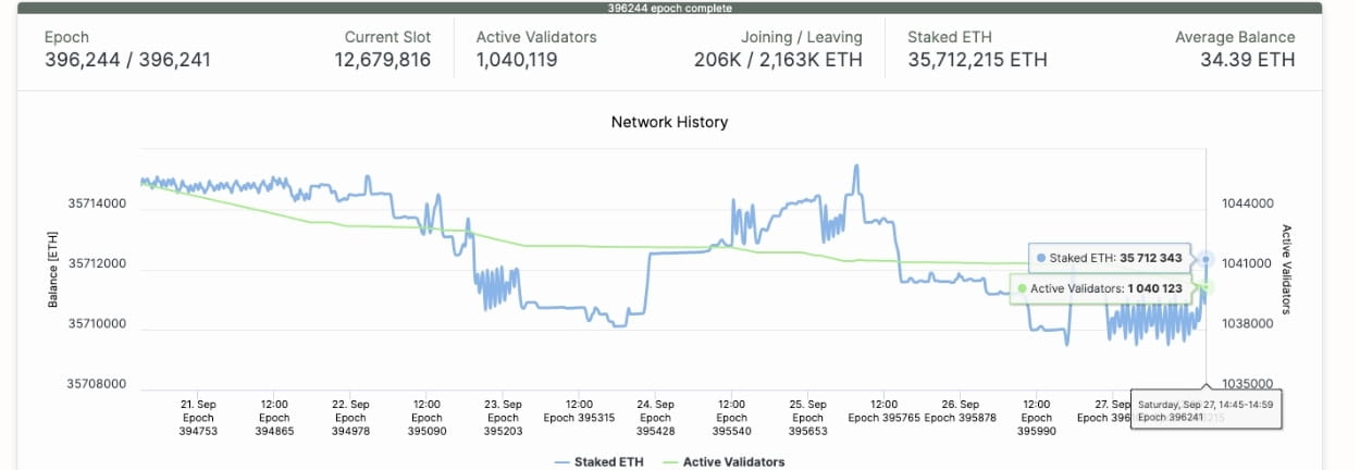 Secondo Beaconchain, nelle ultime 24 ore sono stati messi in staking 2589 ETH, il che ha portato a un prelievo di 11 milioni di dollari dall'offerta di mercato.