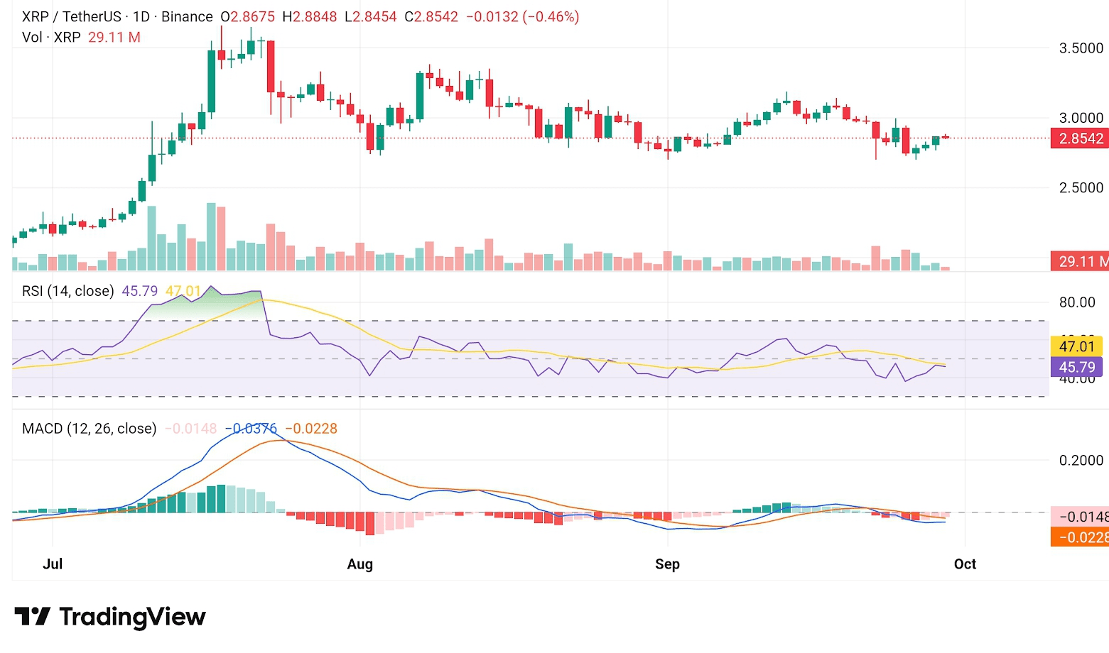 Prezzo $XRP è scambiato a $2,85 dopo un rimbalzo dal supporto a $2,70 la scorsa settimana.