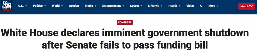 Fox News riporta che dopo che il Senato degli Stati Uniti non è riuscito ad approvare la legge di spesa sostenuta dai repubblicani, destinata a mantenere operativi gli enti federali fino al 21 novembre, la Casa Bianca ha ufficialmente annunciato che il governo sta per chiudere.