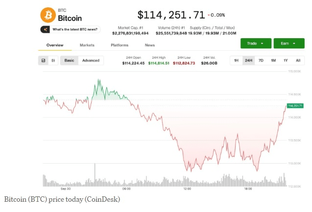 Bitcoin - che era sceso di circa il 2% da un picco notturno vicino a 115.000 dollari - è rimbalzato con successo a 114.300 dollari nel pomeriggio, mostrando un leggero aumento rispetto a 24 ore fa. Il prezzo di scambio di Ethereum è leggermente superiore ai 4.100 dollari, con una diminuzione dell'1,3% nello stesso periodo.