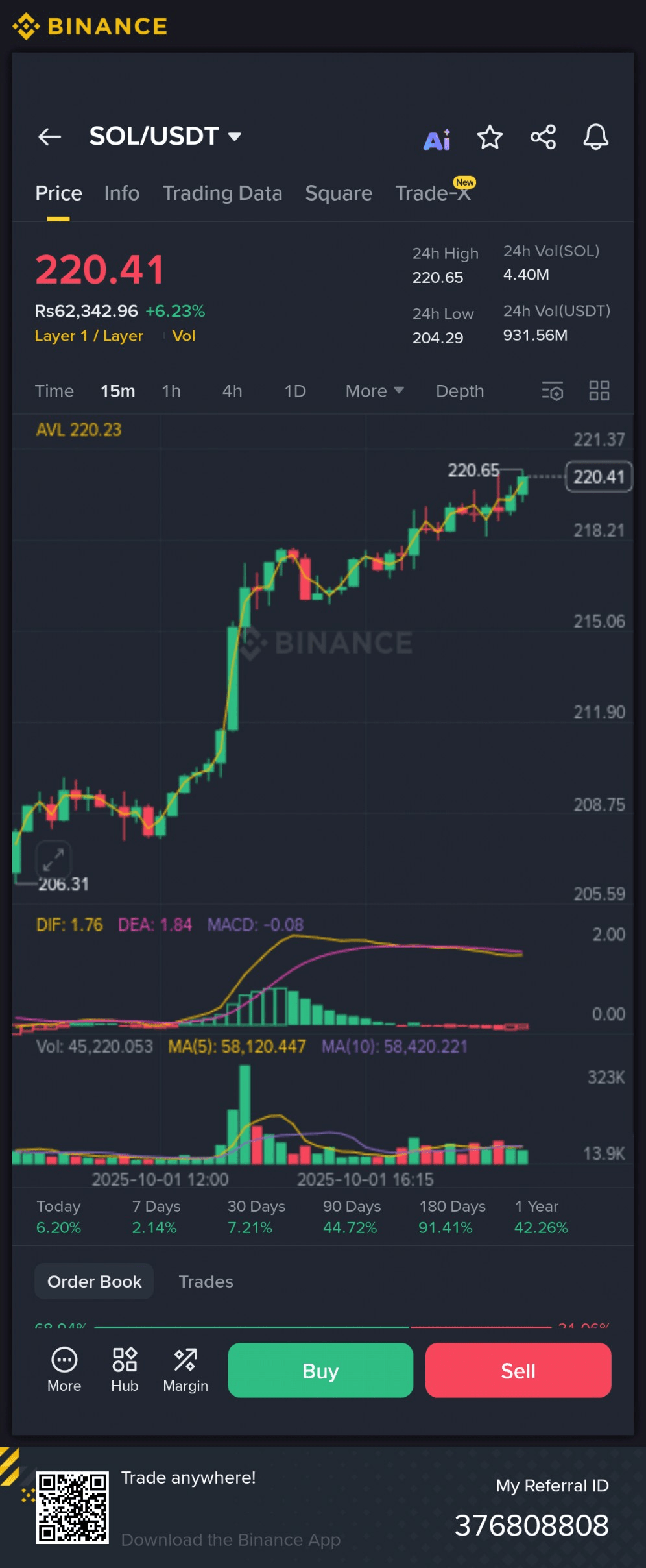 $SOL è appena aumentato da $206 → $217.95 con una forte momentum rialzista. Gli acquirenti stanno difendendo aggressivamente la zona dei $215, che mostra fiducia ed energia nel mercato. Se questo livello di supporto regge, potremmo vedere un'altra potente spinta verso l'alto.