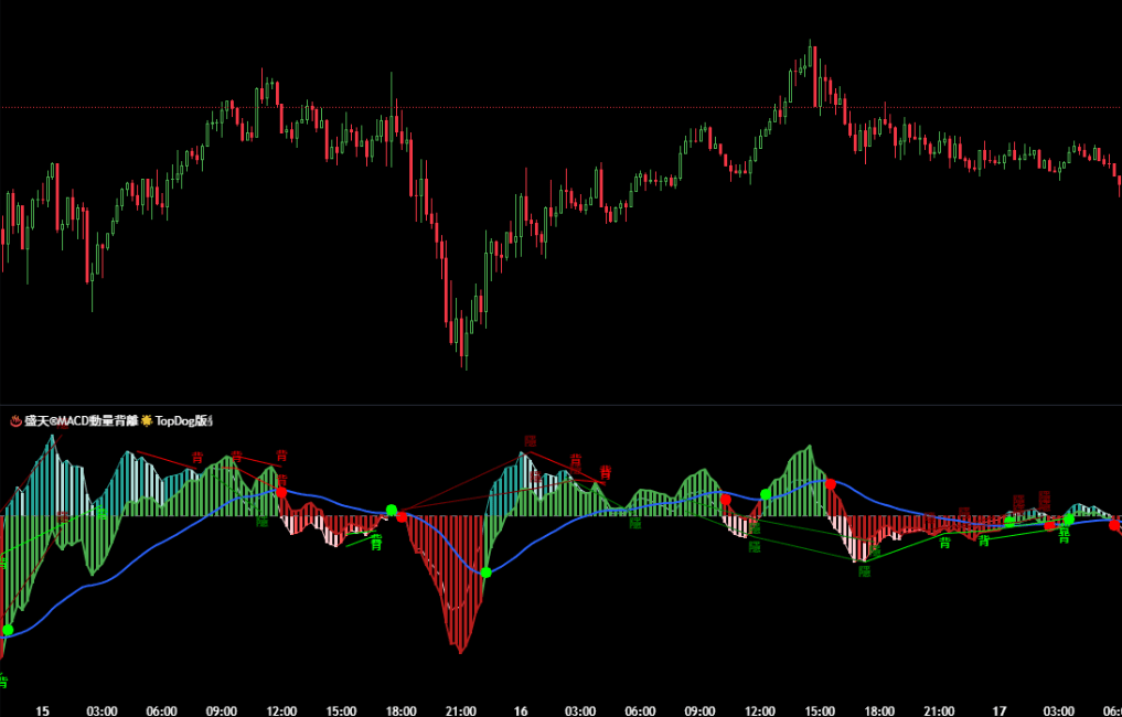 La Modalità Top Dog è una funzione avanzata dell'indicatore che migliora la sensibilità del MACD allo slancio a breve termine e la sua capacità di identificare tendenze a lungo termine attraverso periodi specifici di media mobile (5, 20, 30) e visualizzazione MOM/DAD. È particolarmente adatta per trader a breve termine, trader swing e partecipanti al mercato che necessitano di segnali di slancio rapidi. Attraverso punti di incrocio, istogrammi MOM, avvisi sulla direzione DAD e rilevamento delle divergenze, la Modalità Top Dog fornisce ai trader strumenti flessibili per la generazione di segnali adatti a vari ambienti di mercato.