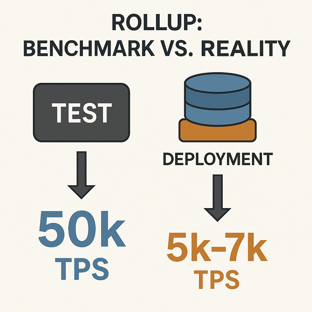 Molti progetti rollup pubblicano numeri impressionanti di TPS nei test di calcolo - cioè misurano solo la logica del contratto, senza eseguire l'intero carico di archiviazione.