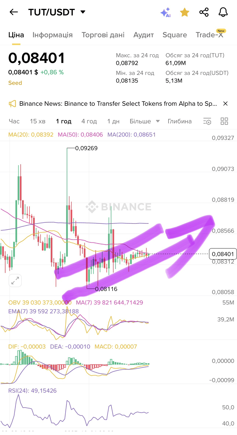 - Fondamenta costruite per un movimento di 0.10+ USDT