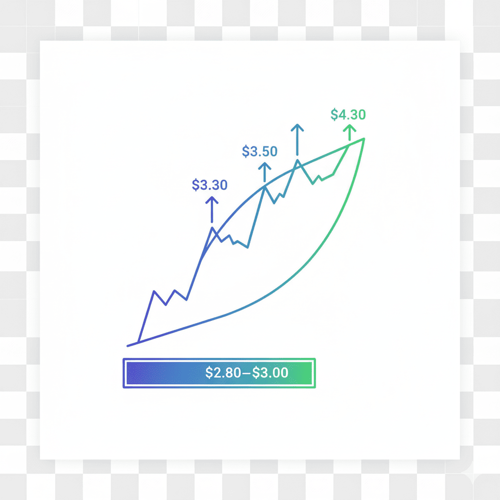 Supporto chiave: $2.80 – $3.00. Mantenere questa zona convalida il breakout. Una caduta al di sotto potrebbe innescare un ritracciamento.